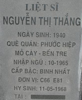 Tiêu đề : Tìm thân nhân liệt sĩ Nguyễn Thị Thắng