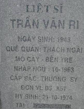 Tiêu đề : Tìm thân nhân liệt sĩ Trần Văn Ri