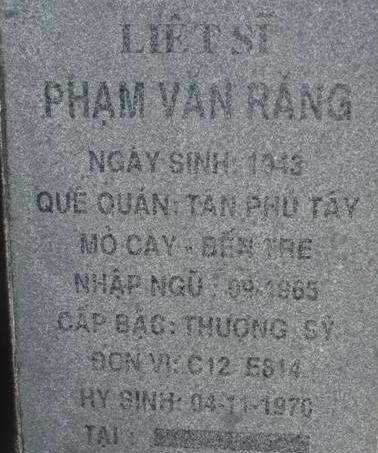 Tiêu đề : Tìm thân nhân liệt sĩ Phạm Văn Răng