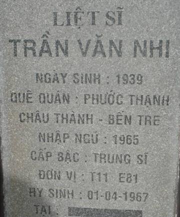 Tiêu đề : Tìm thân nhân liệt sĩ Trần Văn Nhi