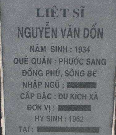 Tiêu đề : Tìm thân nhân liệt sĩ Nguyễn Văn Dốn