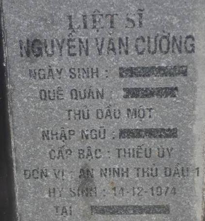 Ngày hi sinh : 1974 - 14/12/1974