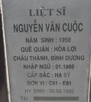 Tiêu đề : Tìm thân nhân liệt sĩ Nguyễn Văn Cuộc