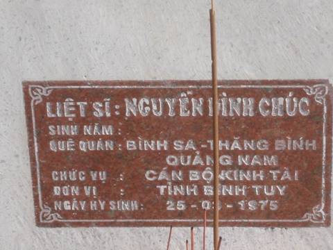 Nơi quy tập: Nghĩa trang liệt sĩ tỉnh Bình Thuận