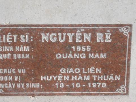 Nơi quy tập: Nghĩa trang liệt sĩ tỉnh Bình Thuận