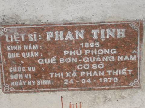 Nơi quy tập: Nghĩa trang liệt sĩ tỉnh Bình Thuận