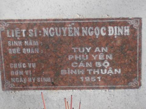 Nơi quy tập: Nghĩa trang liệt sĩ tỉnh Bình Thuận