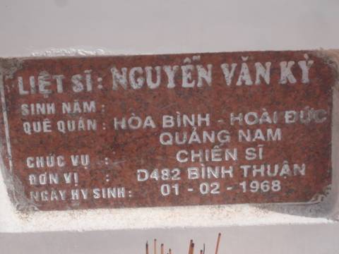 Nơi quy tập: Nghĩa trang liệt sĩ tỉnh Bình Thuận