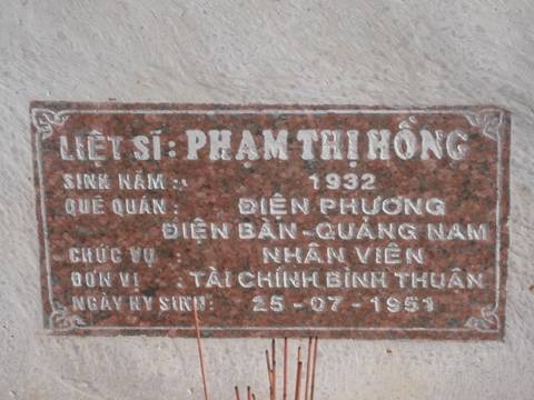 Nơi quy tập: Nghĩa trang liệt sĩ tỉnh Bình Thuận