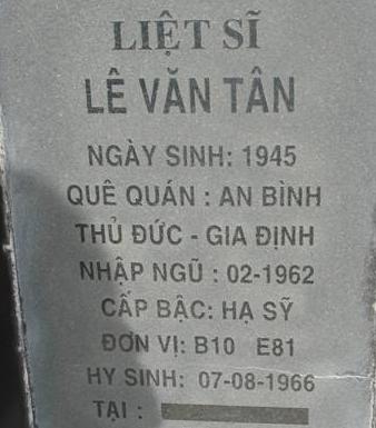 Ngày hi sinh : 1966 - 07/08/1966