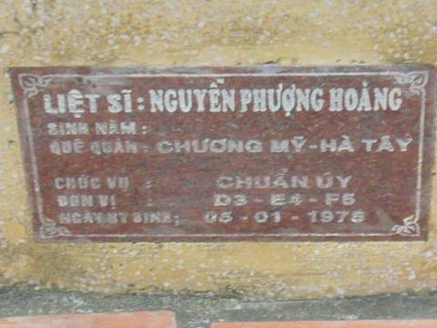 Nguyên quán trên bia mộ: Chương Mỹ, Hà Tây. Để tìm hiểu thêm thông tin mộ liệt sĩ , vui lòng liên hệ: