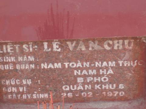 Nguyên quán trên bia mộ: Nam Toàn, Nam Trực, Nam Hà. Để tìm hiểu thêm thông tin mộ liệt sĩ , vui lòng liên hệ: