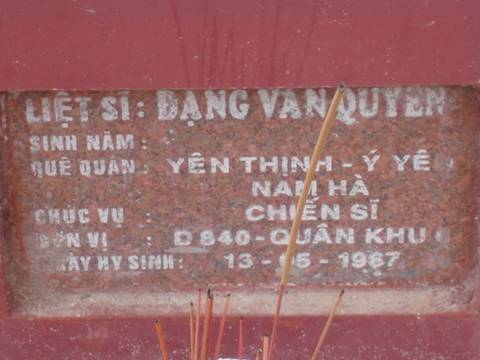 Tiêu đề : Nhắn tìm thân nhân liệt sỹ Đặng Văn Quyến (Quyên - Quyền)