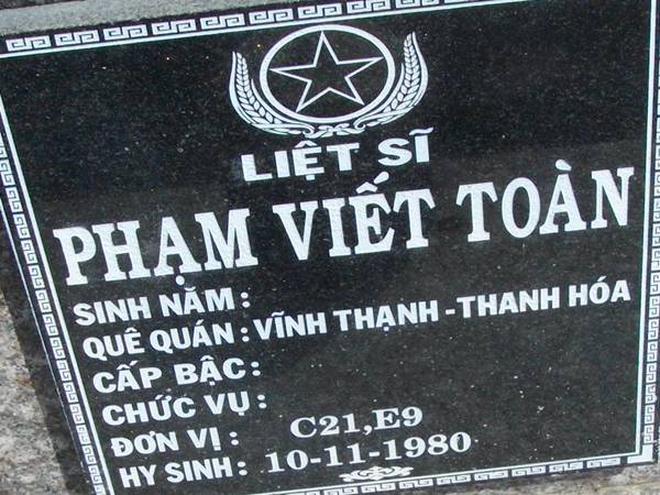 Nhắn tìm thân nhân liệt sỹ Phạm Viết Toàn