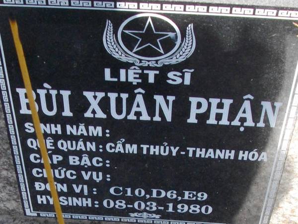 Nhắn tìm thân nhân liệt sỹ Bùi Xuân Phận
