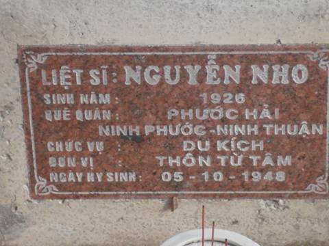 Nơi quy tập: Nghĩa trang liệt sĩ tỉnh Bình Thuận