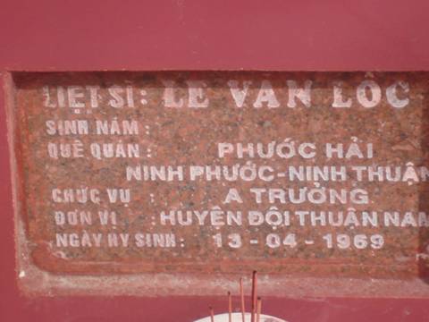 Nơi quy tập: Nghĩa trang liệt sĩ tỉnh Bình Thuận