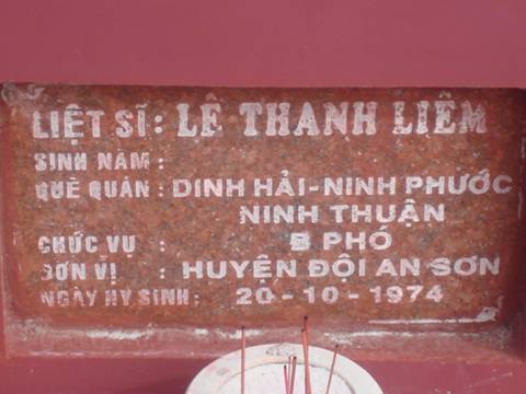 Nơi quy tập: Nghĩa trang liệt sĩ tỉnh Bình Thuận