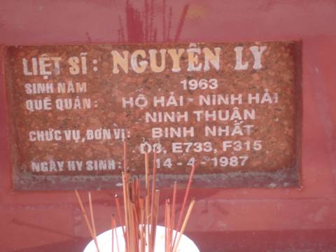 Nơi quy tập: Nghĩa trang liệt sĩ tỉnh Bình Thuận