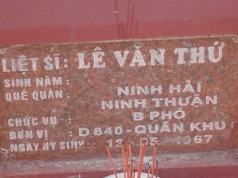 Nơi quy tập: Nghĩa trang liệt sĩ tỉnh Bình Thuận