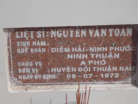 Nơi quy tập: Nghĩa trang liệt sĩ tỉnh Bình Thuận