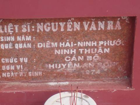 Nơi quy tập: Nghĩa trang liệt sĩ tỉnh Bình Thuận