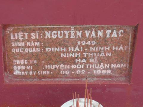 Nơi quy tập: Nghĩa trang liệt sĩ tỉnh Bình Thuận