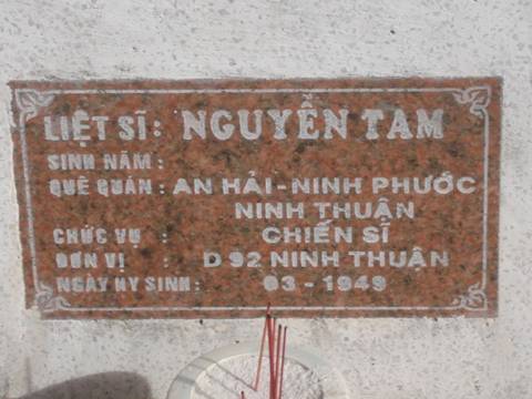 Nơi quy tập: Nghĩa trang liệt sĩ tỉnh Bình Thuận