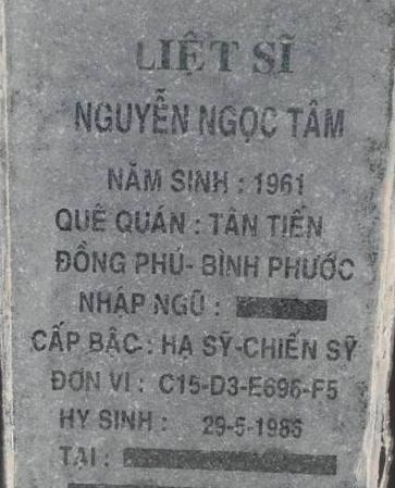 Tiêu đề : Tìm thân nhân liệt sĩ Nguyễn Ngọc Tâm