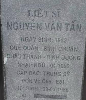 Tiêu đề : Tìm thân nhân liệt sĩ Nguyễn Văn Tấn