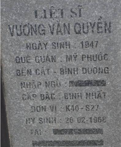 Tiêu đề : Tìm thân nhân liệt sĩ Vương Văn Quyền