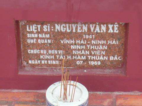 Nơi quy tập: Nghĩa trang liệt sĩ tỉnh Bình Thuận