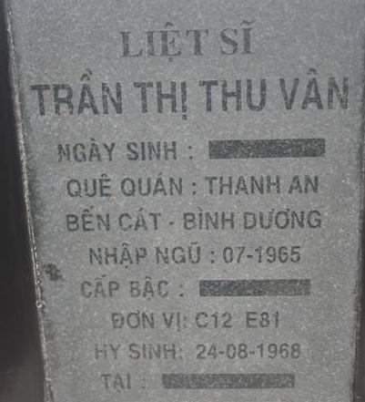 Tiêu đề : Tìm thân nhân liệt sĩ Trần Thị Thu Vân