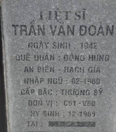 Tiêu đề : Tìm thân nhân liệt sĩ Trần Văn Đoản