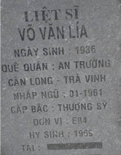 Tiêu đề : Tìm thân nhân liệt sĩ Võ Văn Lía