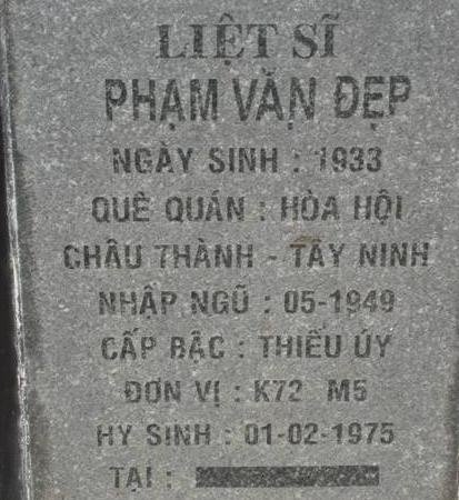 Tiêu đề : Tìm thân nhân liệt sĩ Phạm Văn Đẹp