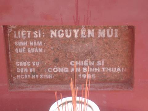 Nơi quy tập: NTLS tỉnh Bình Thuận