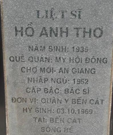 Nơi hi sinh : Bến Cát- Bình Dương