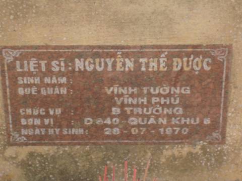 Nguyên quán trên bia mộ: Vĩnh Tường, Vĩnh Phú. Để tìm hiểu thêm thông tin mộ liệt sĩ, vui lòng liên hệ: Ban quản lý Nghĩa trang liệt sĩ tỉnh Bình Thuận Địa chỉ: Xã Hồng Sơn, huyện Hàm Thuận Bắc, tỉnh Bình Thuận. Điện thoại: 0623 624088.