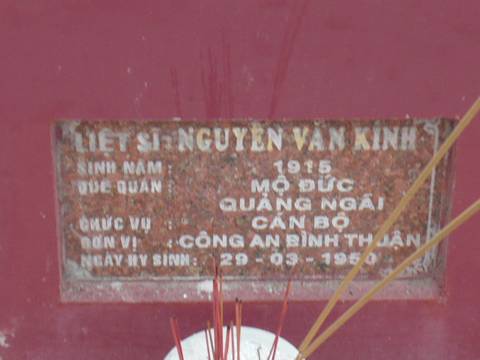 Nơi quy tập: Nghĩa trang liệt sĩ tỉnh Bình Thuận