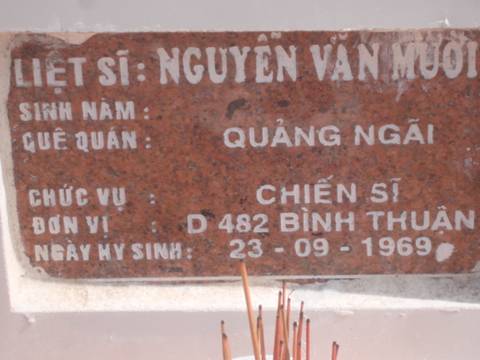 Nơi quy tập: Nghĩa trang liệt sĩ tỉnh Bình Thuận