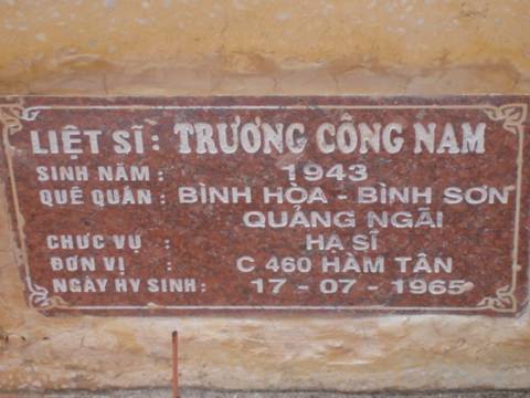 Nơi quy tập: Nghĩa trang liệt sĩ tỉnh Bình Thuận
