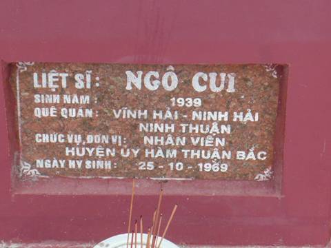 Nơi quy tập: Nghĩa trang liệt sĩ tỉnh Bình Thuận