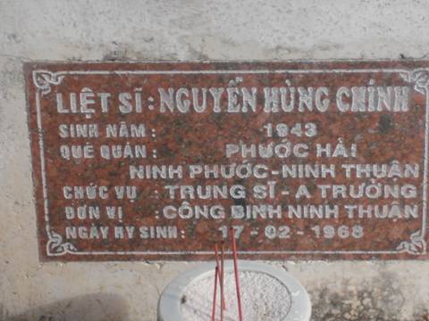 Nơi quy tập: Nghĩa trang liệt sĩ tỉnh Bình Thuận