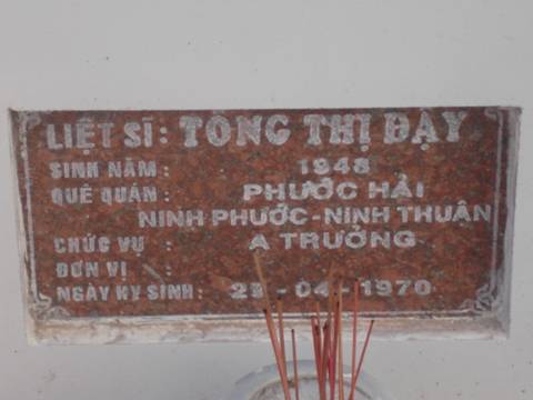 Nơi quy tập: Nghĩa trang liệt sĩ tỉnh Bình Thuận