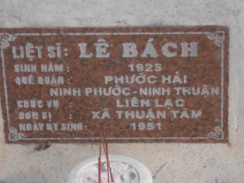 Nơi quy tập: Nghĩa trang liệt sĩ tỉnh Bình Thuận