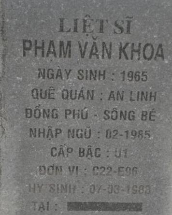 Tiêu đề : Tìm thân nhân liệt sĩ Phạm Văn Khoa