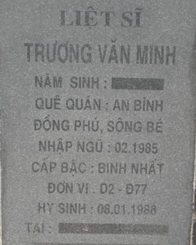Tiêu đề : Tìm thân nhân liệt sĩ Trương Văn Minh