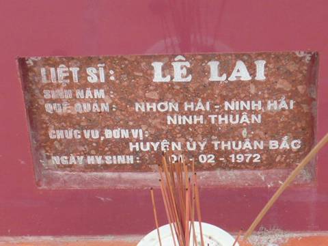 Nơi quy tập: Nghĩa trang liệt sĩ tỉnh Bình Thuận