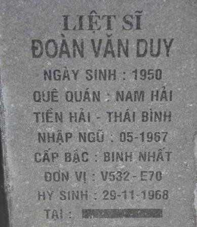 Tiêu đề : Tìm thân nhân liệt sĩ Đoàn Văn Duy